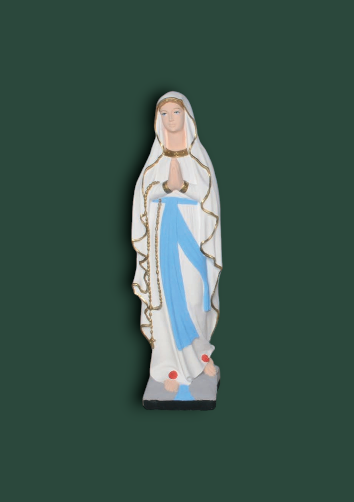 Statua sacra Madonna Lourdes in cemento realizzata in cemento di alta qualità, ideale per decorare giardini, ingressi, cappelle o spazi esterni con un forte valore simbolico e spirituale.